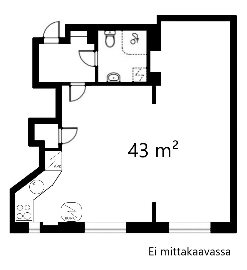 Yksiö isolla alkovilla (yhtiöjärjestyksessä kaksio)